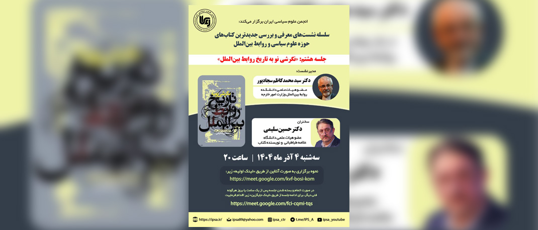انجمن علوم سیاسی ایران به طور منظم نشستها و سخنرانیهایی با حضور برجستهترین اساتید و صاحبنظران علوم سیاسی برگزار میکند. شما می توانید اطلاعات بیشتر را در این بخش دریافت کنید.