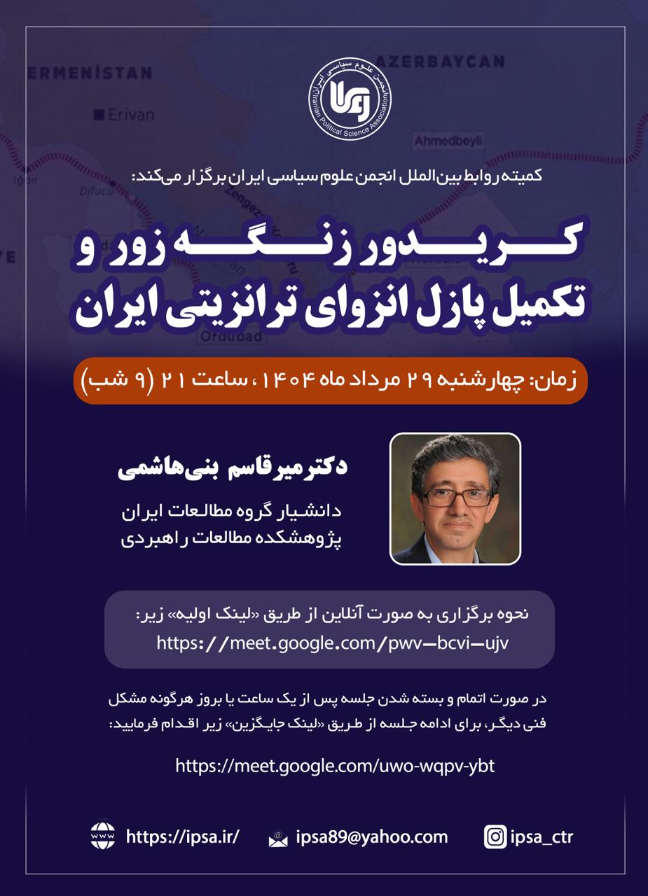 کمیته روابط بین‌الملل انجمن علوم سیاسی ایران برگزار می‌کند: کریدور زنگه زور و تکمیل پازل انزوای ترانزیتی ایران