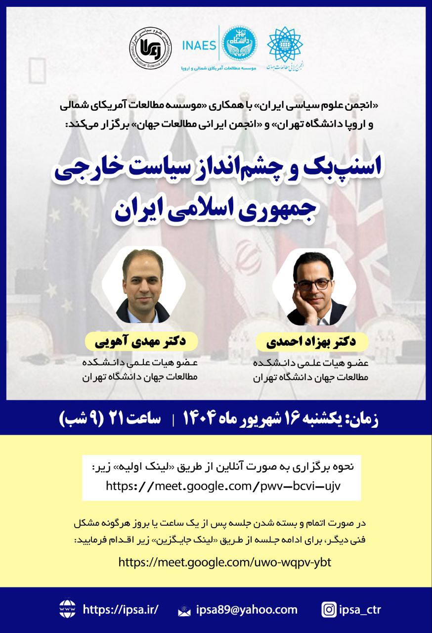 «انجمن علوم سیاسی ایران» با همکاری «موسسه مطالعات آمریکای شمالی و اروپا دانشگاه تهران» و «انجمن ایرانی مطالعات جهان» برگزار میکند: