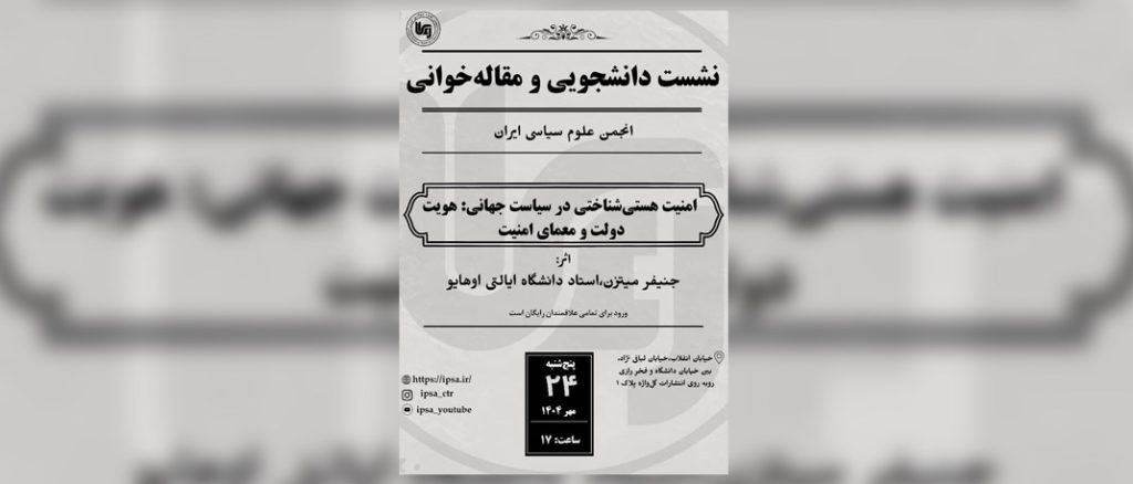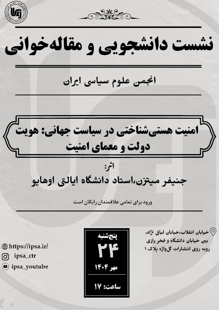 نشست دانشجویی و مقاله‌خوانی – امنیت هست‌شناختی در سیاست جهانی: هویت دولت و معمای امنیت – اثر جنیفر میتزن